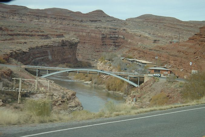 산을 깍아 만든 도로를 지나다보니 이런 사박에도 강이 보였다. 이곳은 Mexican Hat 이란 곳으로 근처에는 누추한 모텔이나 트레일러 파크가 있기도 했다.
